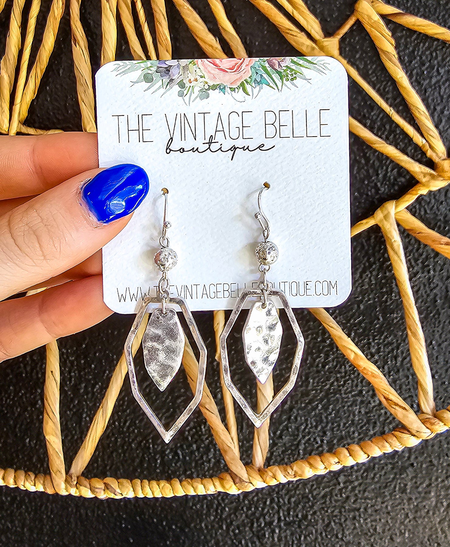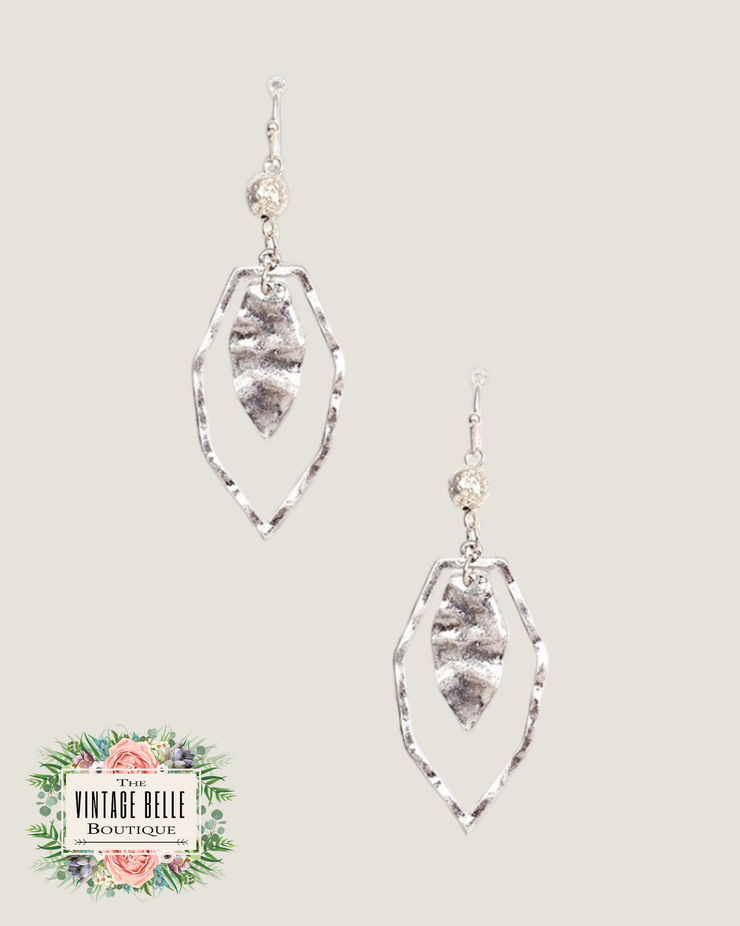 These hammered drop dangle earrings feature a unique, worn gold design measuring approximately 2 inches. Add a touch of elegance and style to any outfit with these chic and versatile earrings.