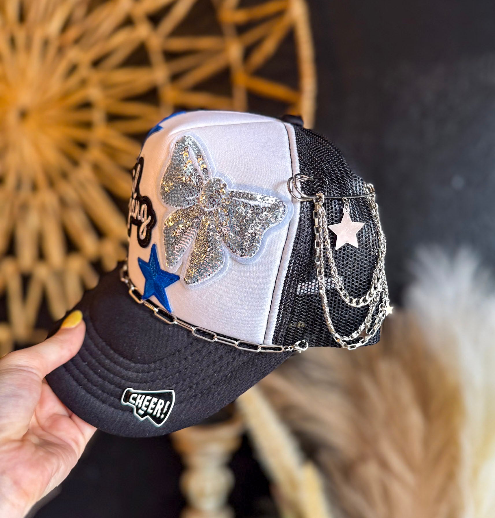 Black and white trucker hat with breathable mesh back