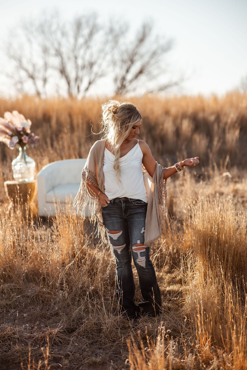Crochet medallion kimono with tassel accents for boho flair