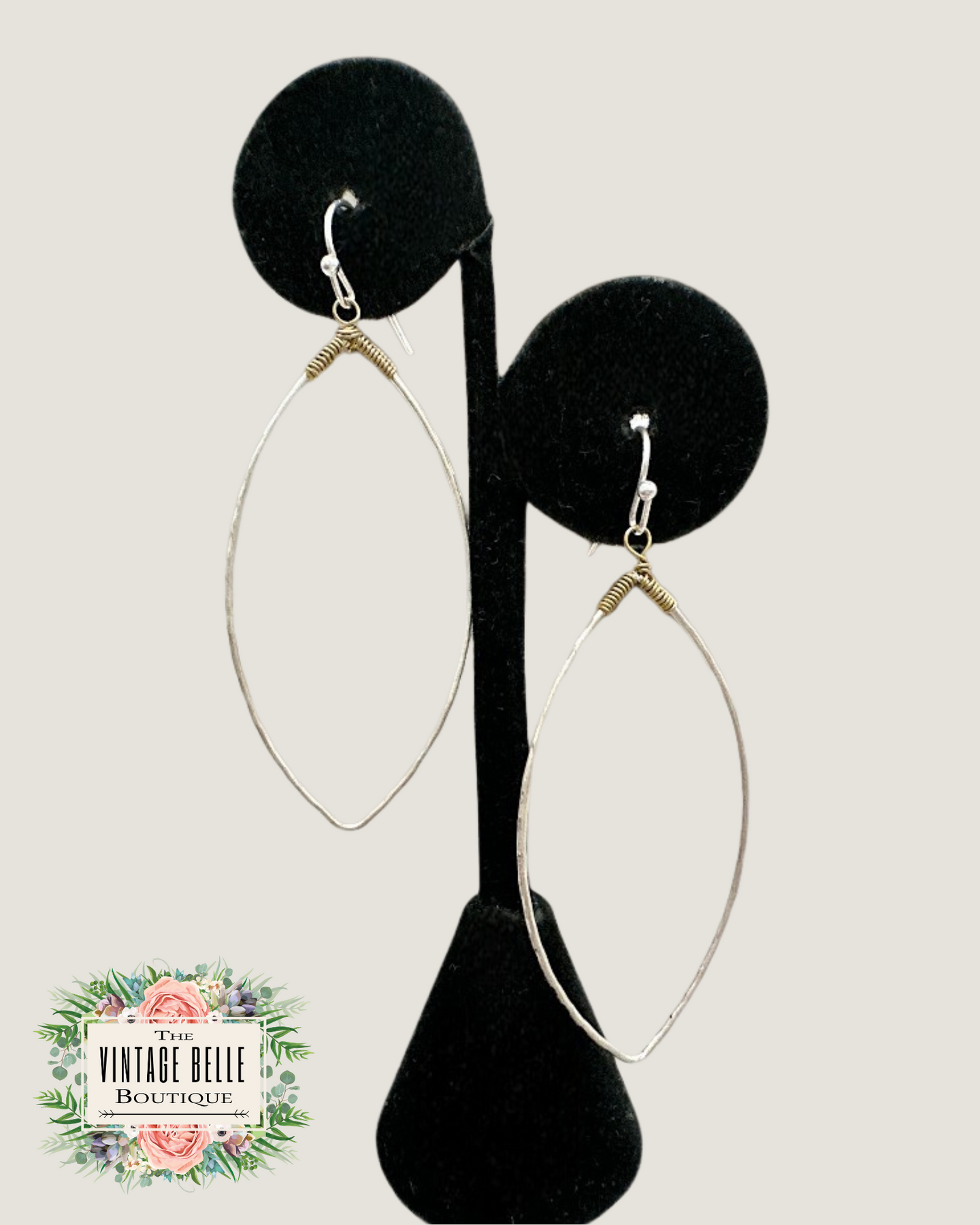 These oval wire dangle earrings feature a teardrop design and are made of wire in a worn silver or hematite finish. Measuring at approximately 2 inches, these wire drop earrings add a unique and stylish touch to any outfit.