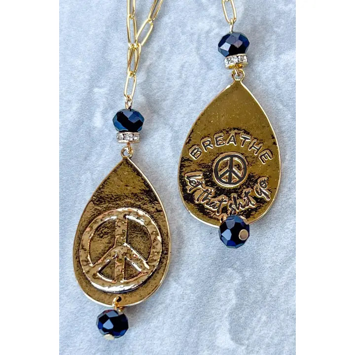 Back of pendant features a fun, sassy engraved saying: “Breathe, let that shit go”