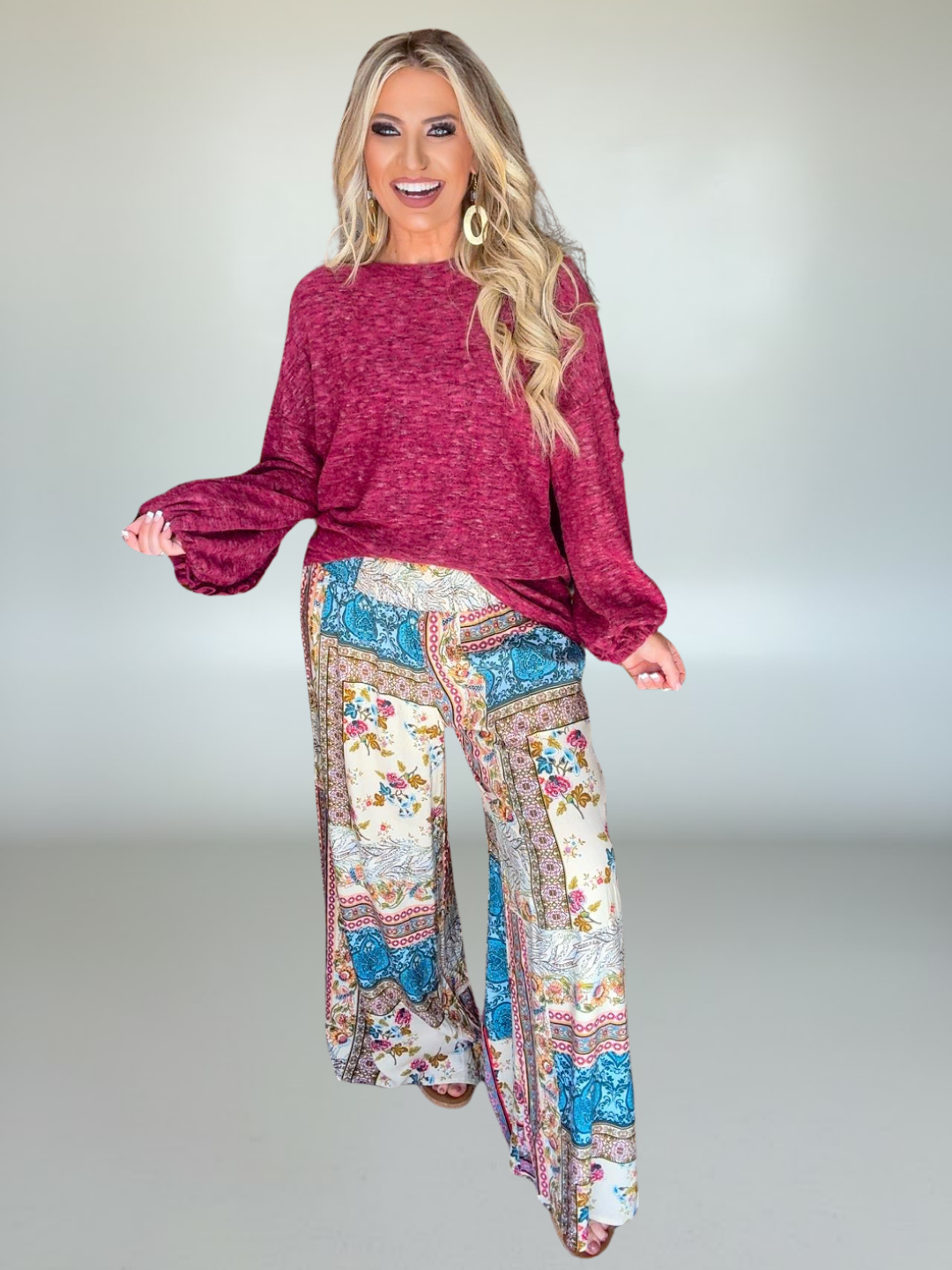 • Ethnic print wide-leg pants for a bold, boho-inspired look