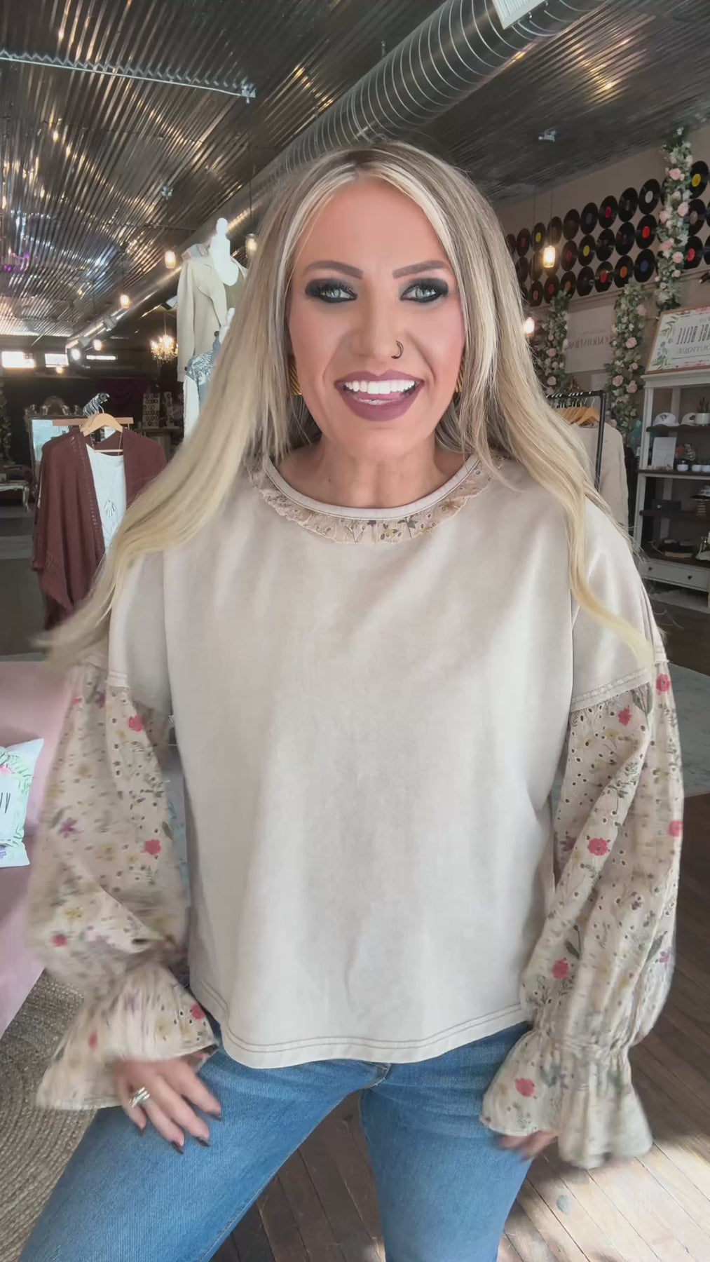 Crafted from mixed media fabrics: soft cotton and floral eyelet for layered texture