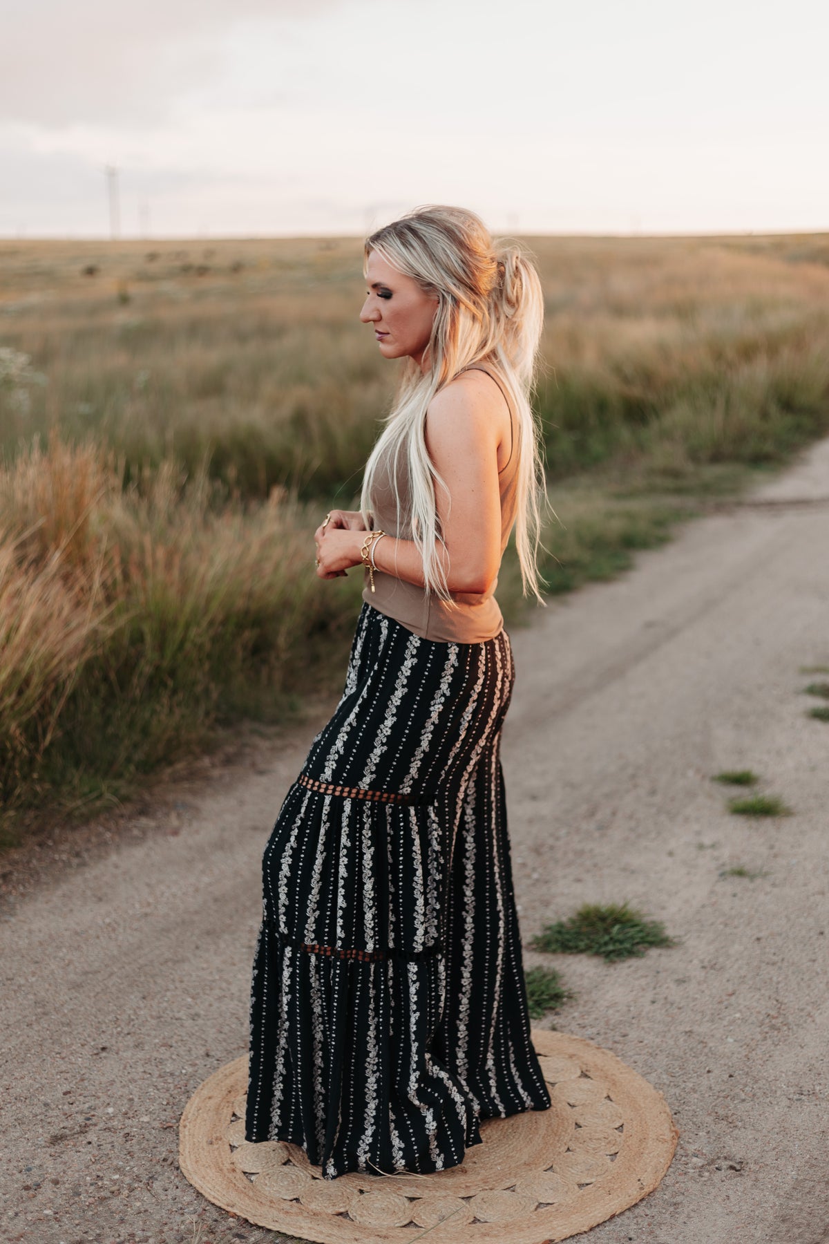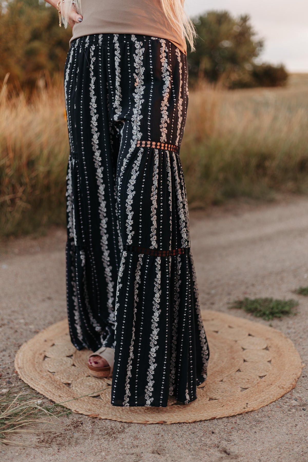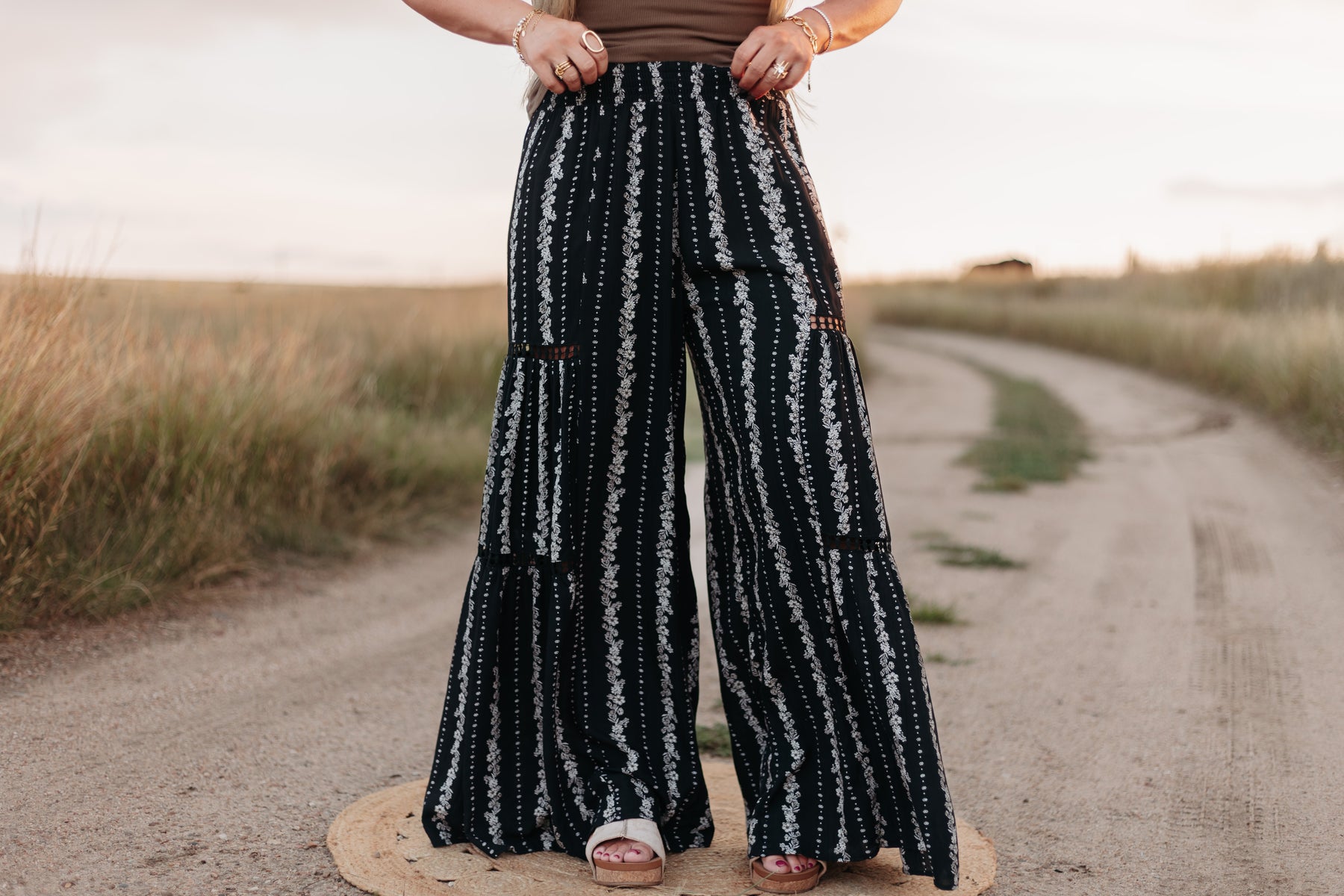 These Slit-Front Wide-Leg Pants are where chic meets effortless cool. The sleek black base keeps it classy, while the bold, beautiful pattern adds just the right amount of flair. And let’s not forget that crochet lace detail—a little peek of leg for extra movement.