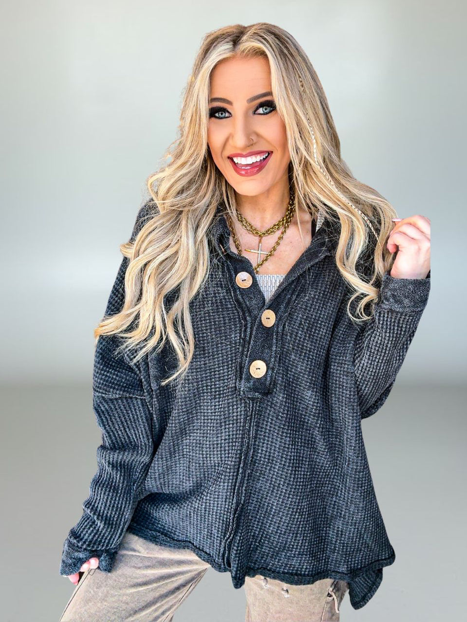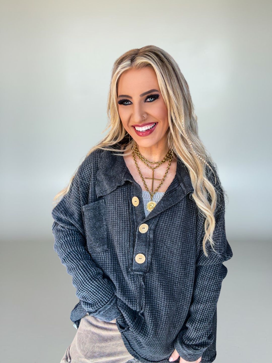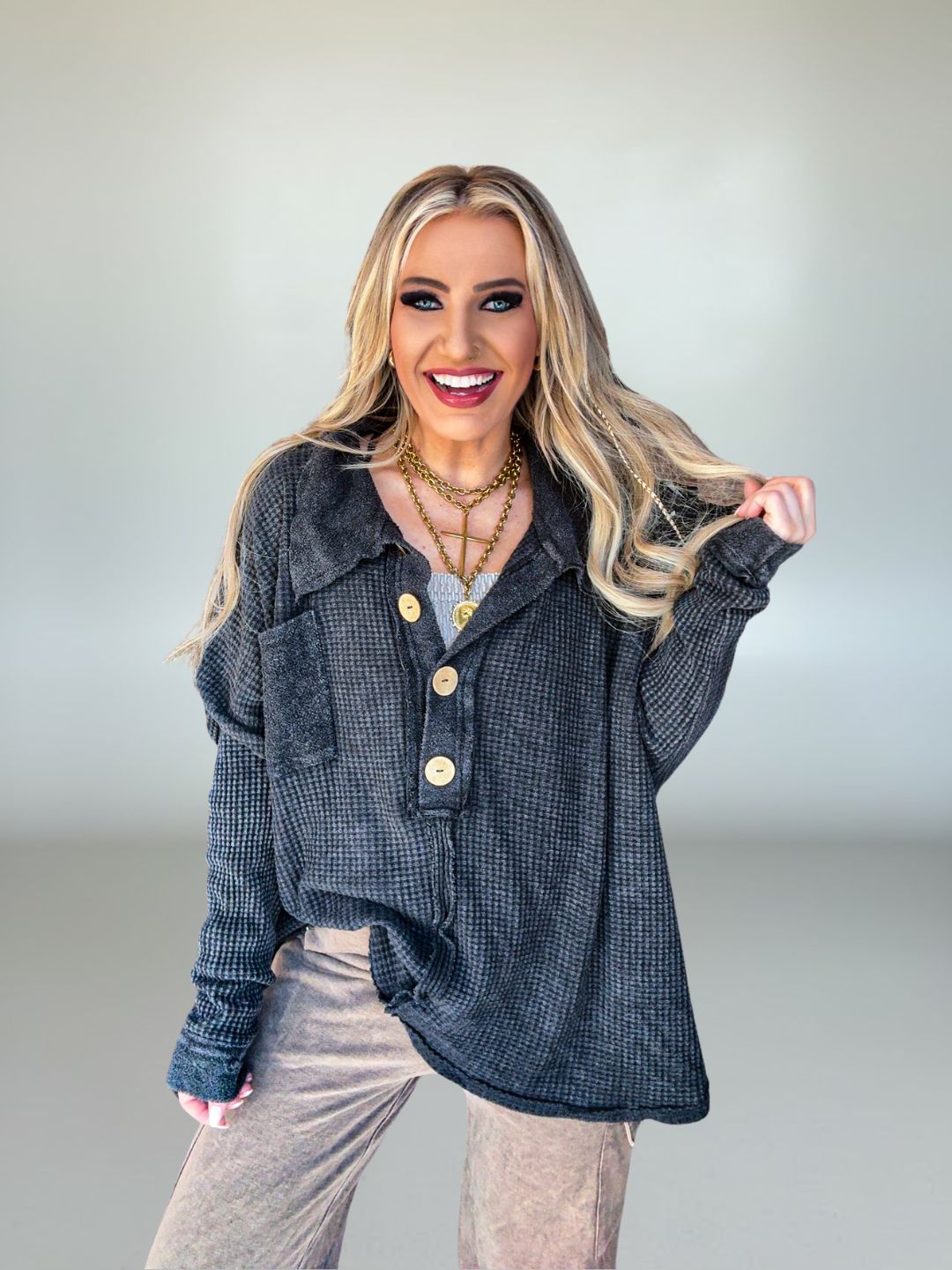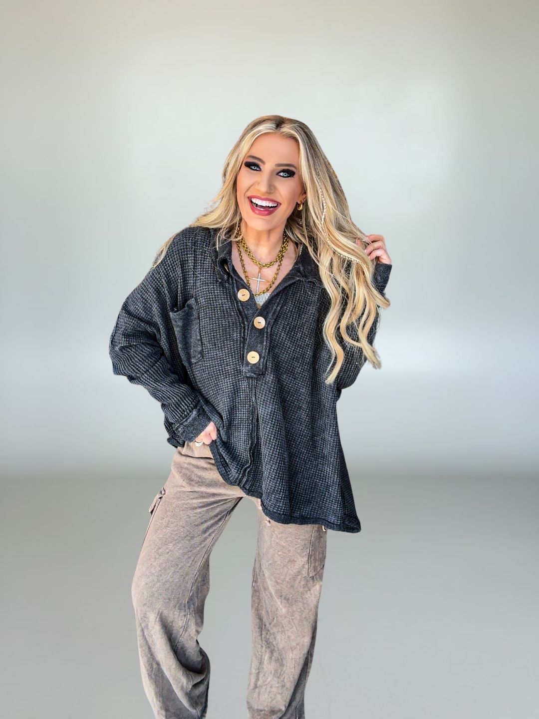 Button detail for casual, effortless charm