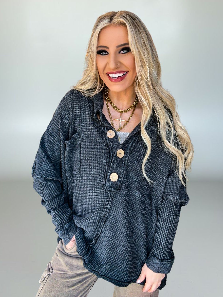 Waffle knit texture adds cozy dimension and subtle visual interest
