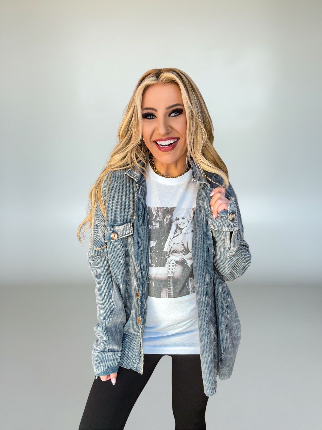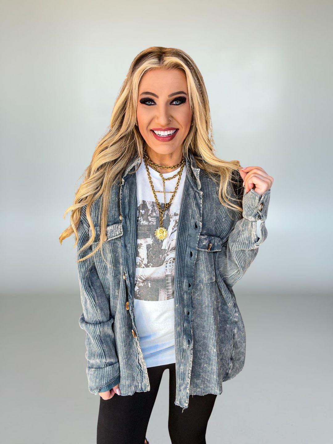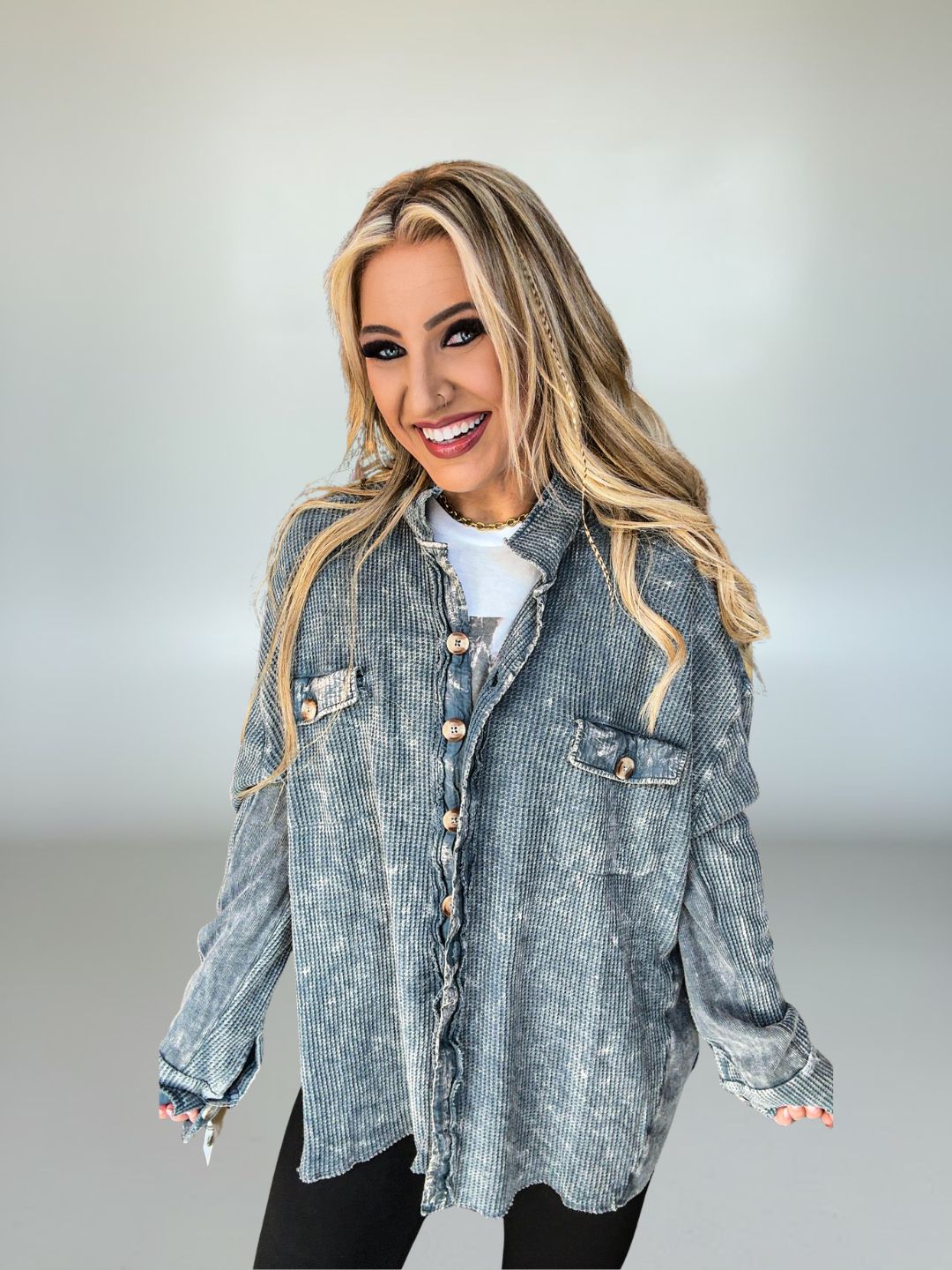 • Effortless, casual piece perfect for layering over tees or tanks
