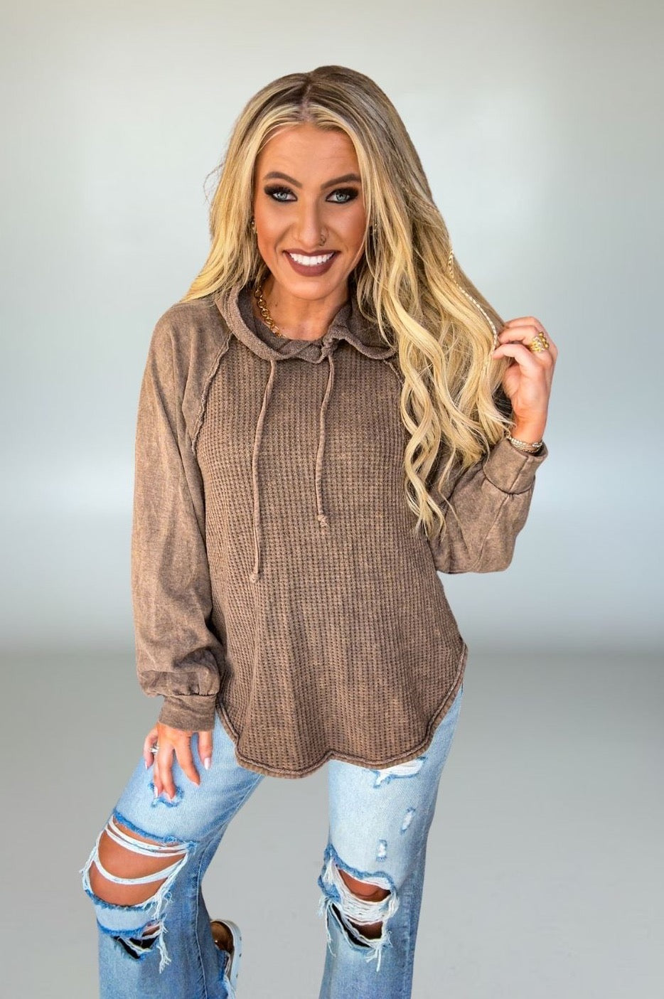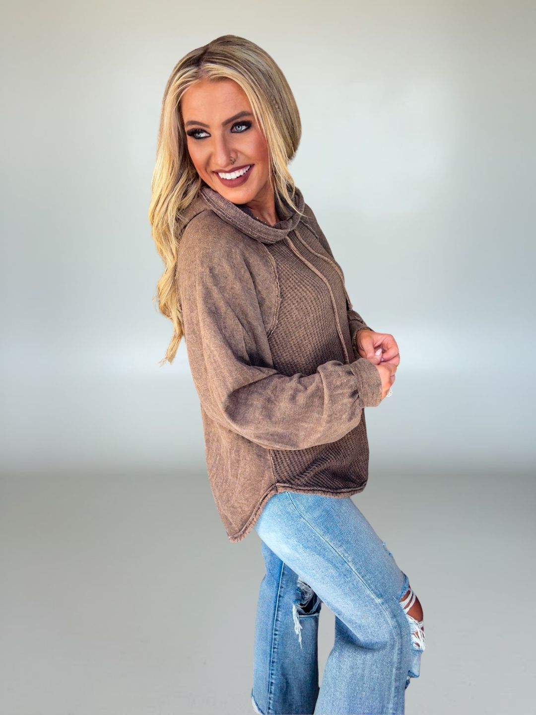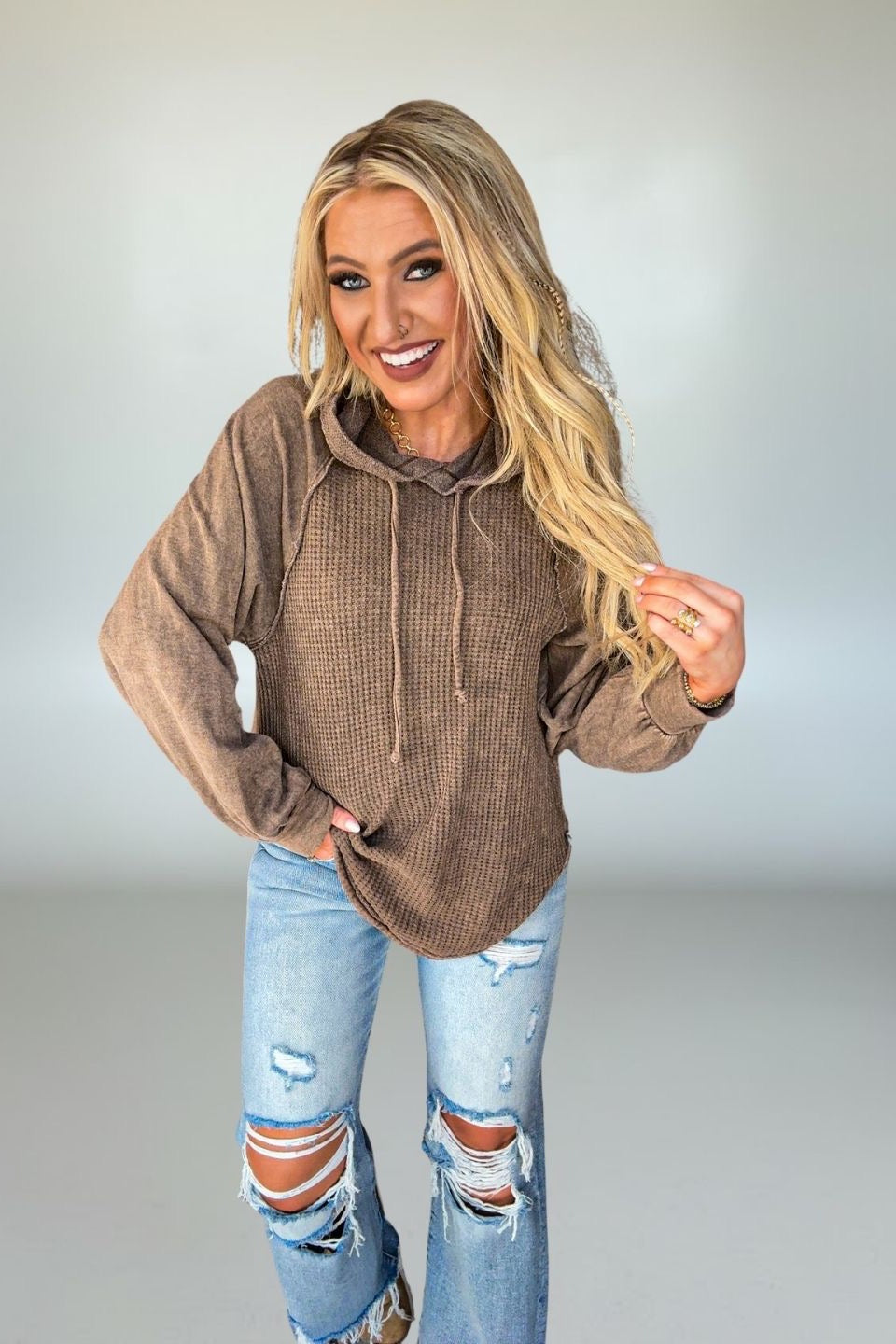Waffle knit texture adds subtle dimension and cozy appeal