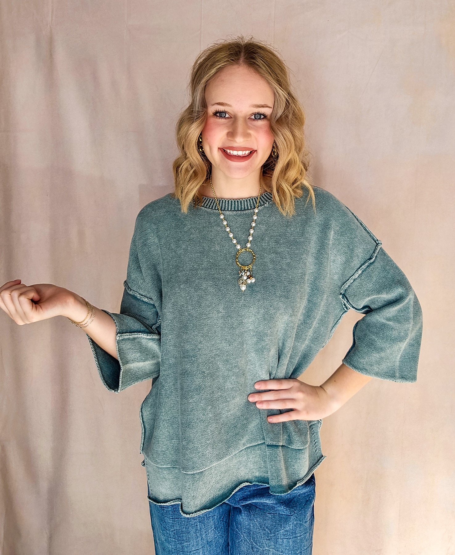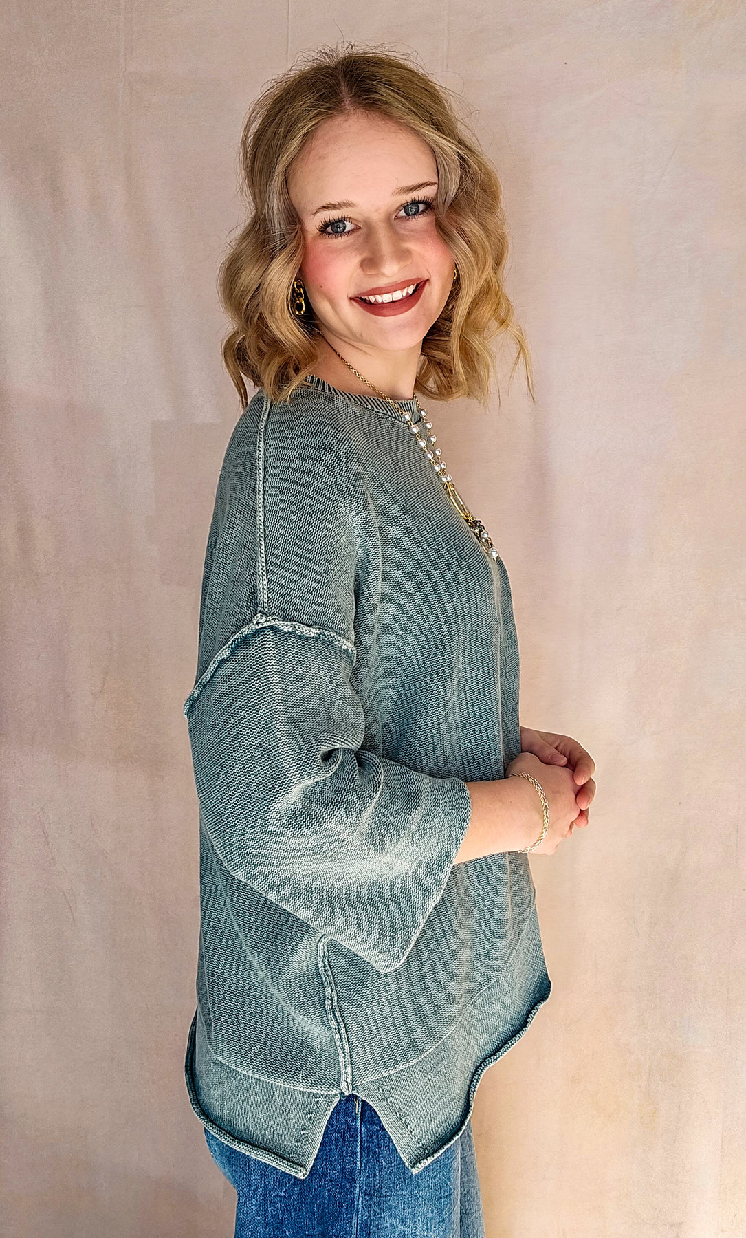 3/4 length sleeves for an easy, transitional feel