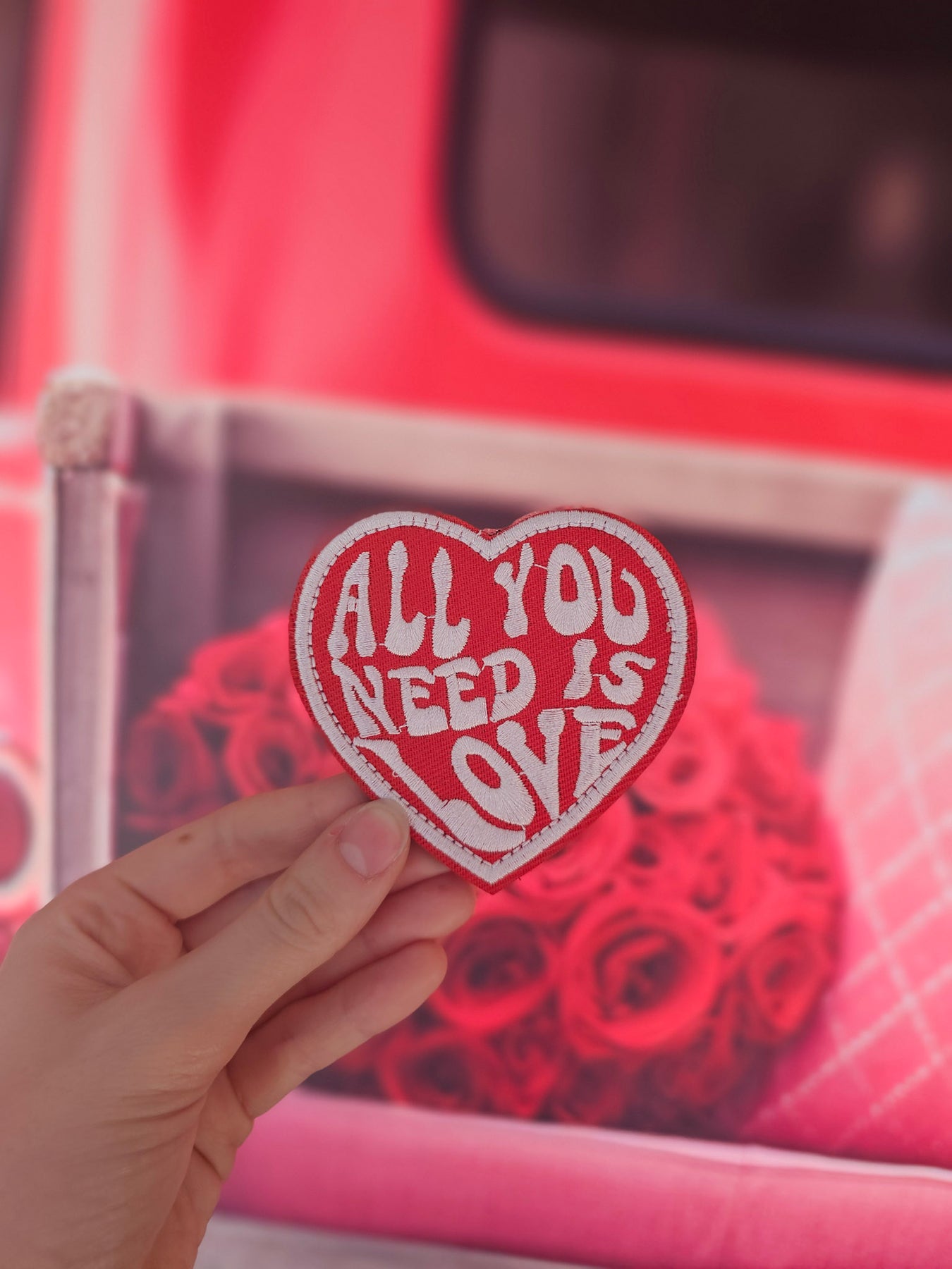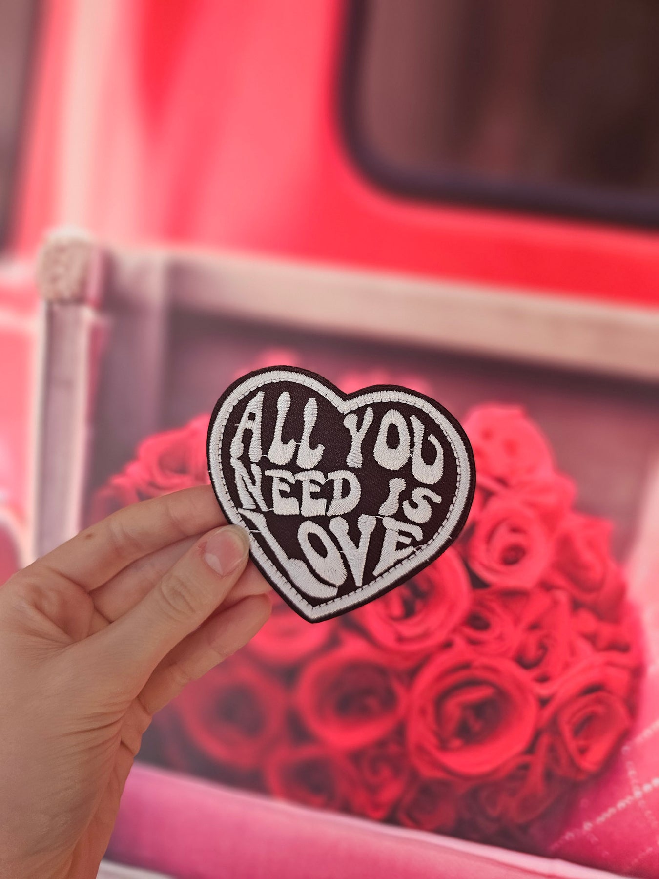 All You Need Is Love Patch – a charming adhesive iron-on design perfect for personalizing jackets, backpacks, and more. This clever two-piece patch features velcro attachment, so the decorative top piece securely velcros to the base layer, giving you flexibility to swap it out whenever the mood strikes. Simply iron on the bottom piece and you're ready to customize. A fun, removable way to express yourself!