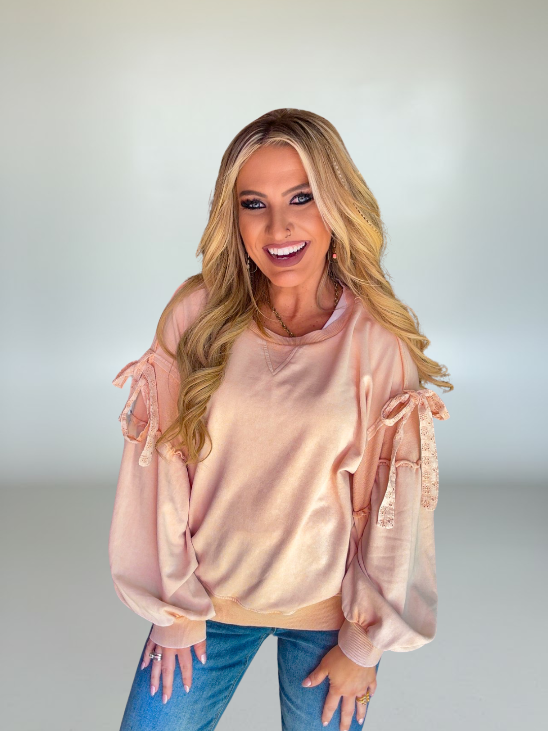 Adorable bow sleeve accents for a playful, feminine touch
