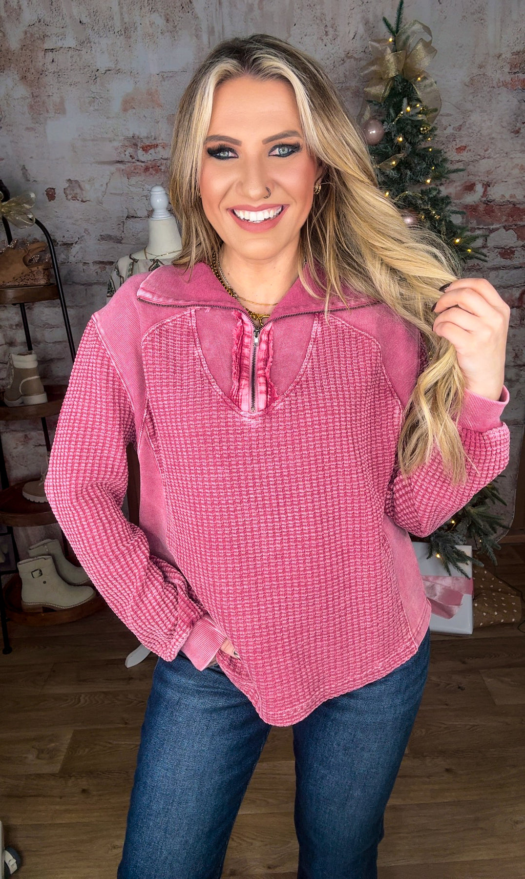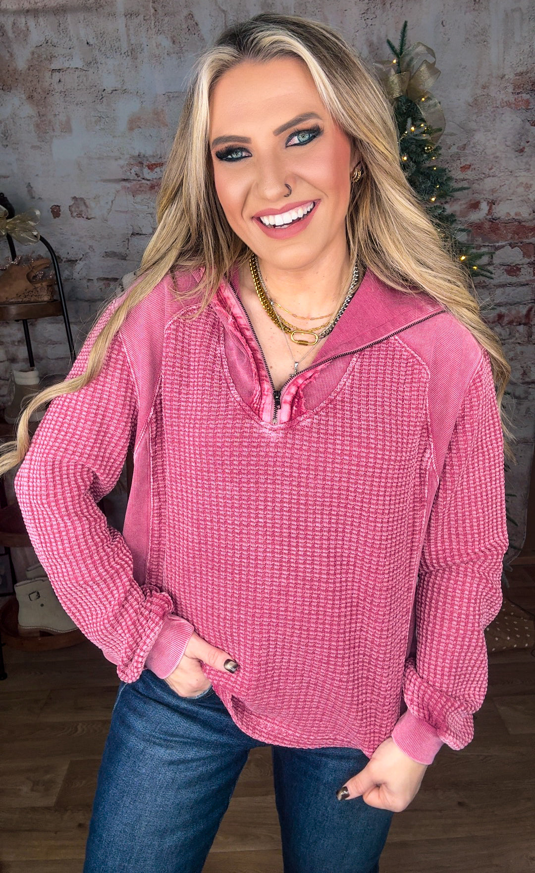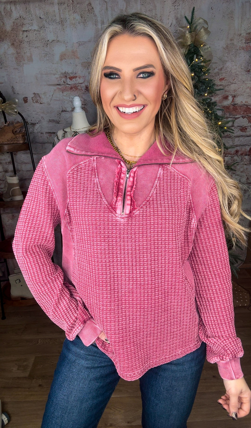 • Zip-up washed thermal pullover