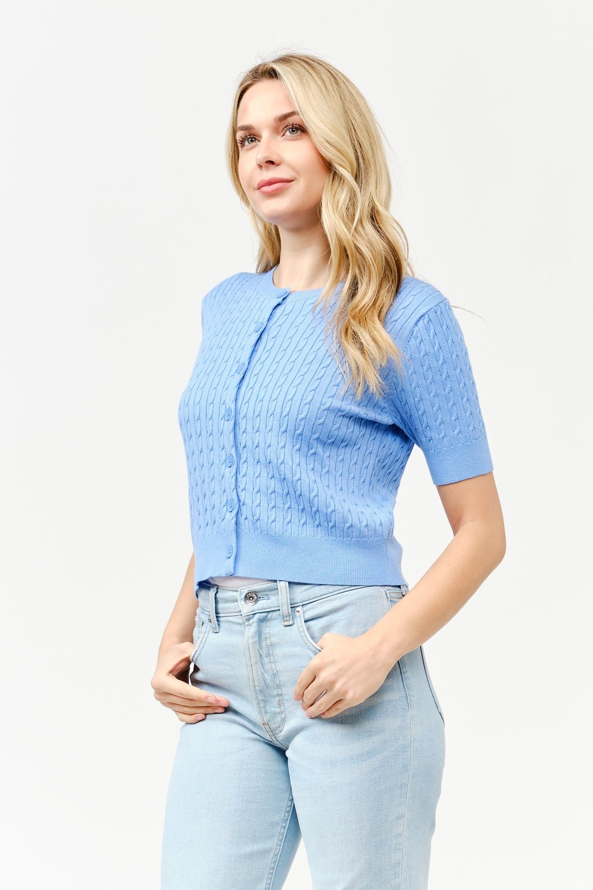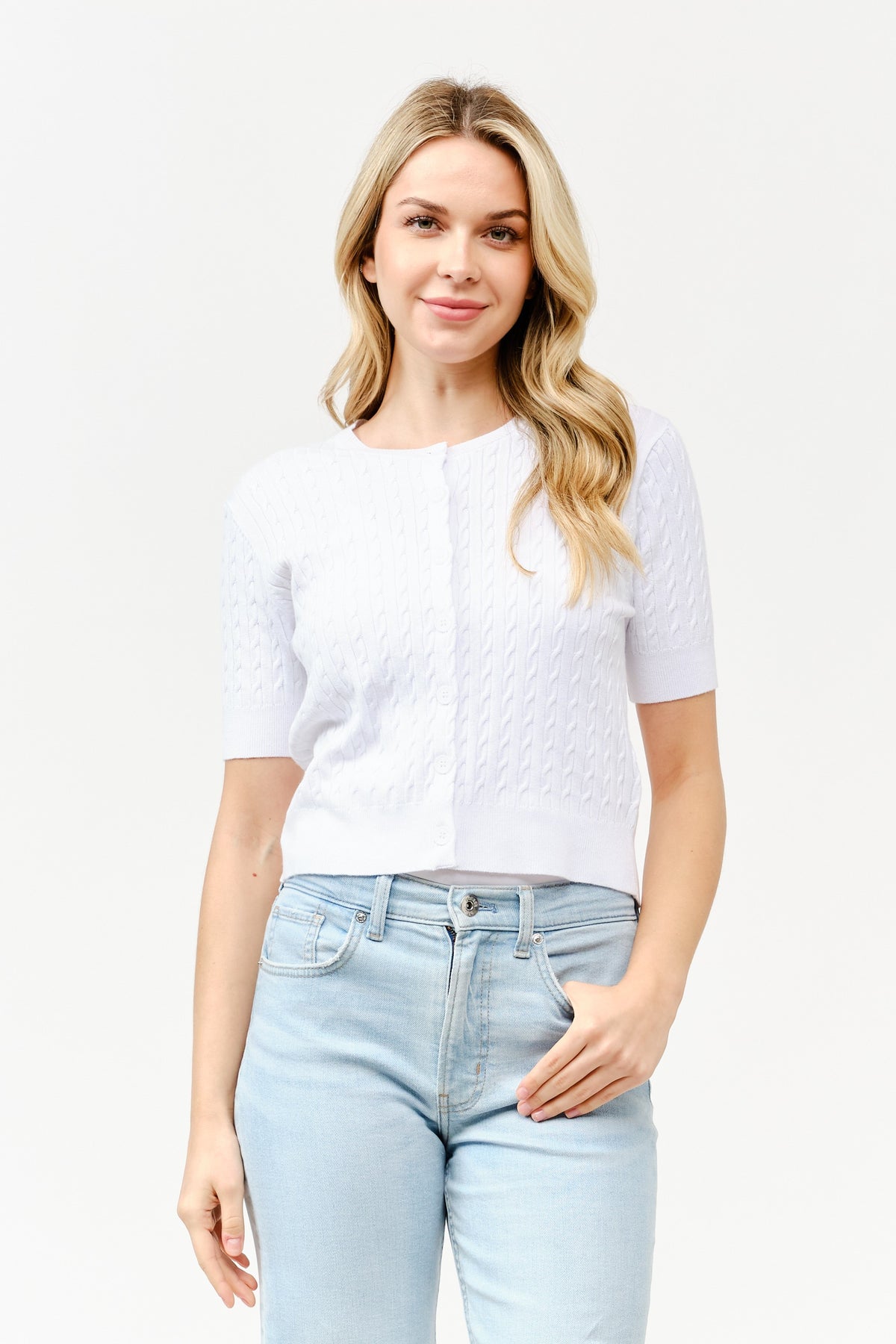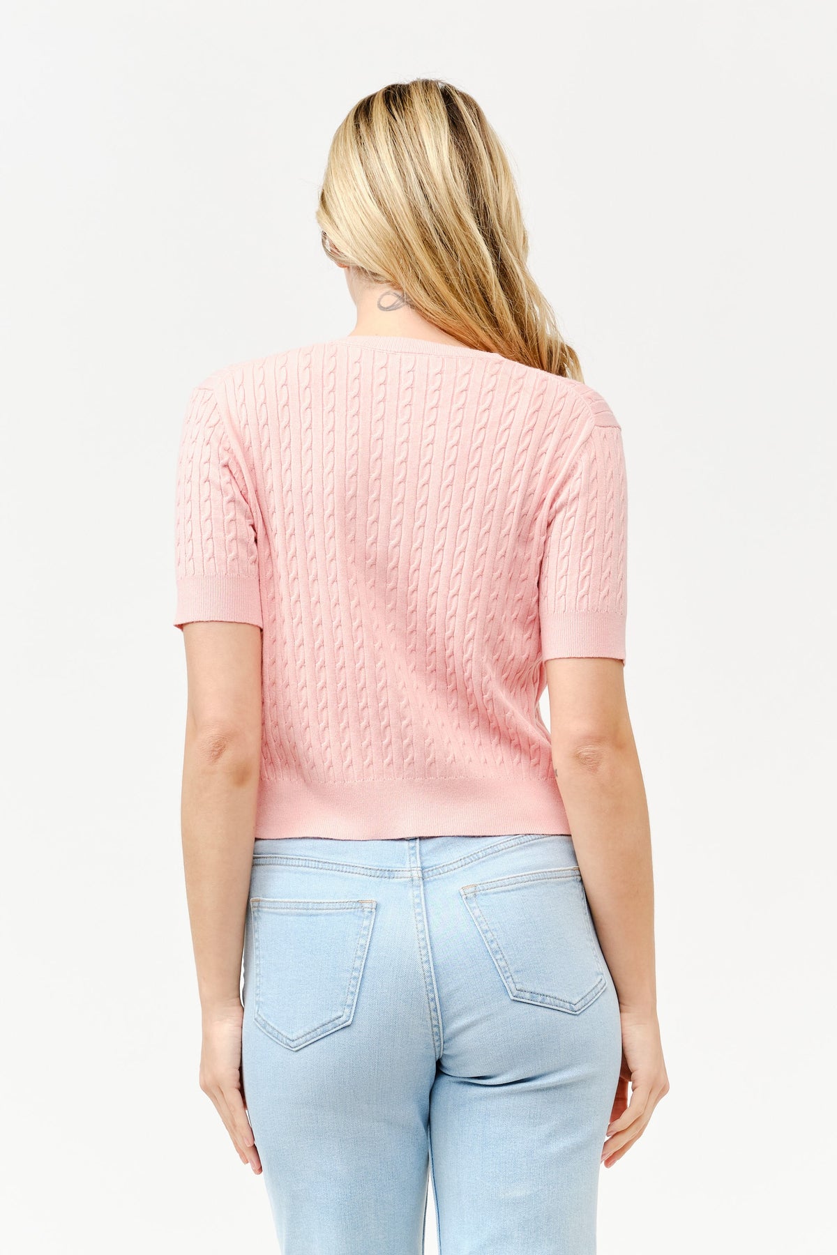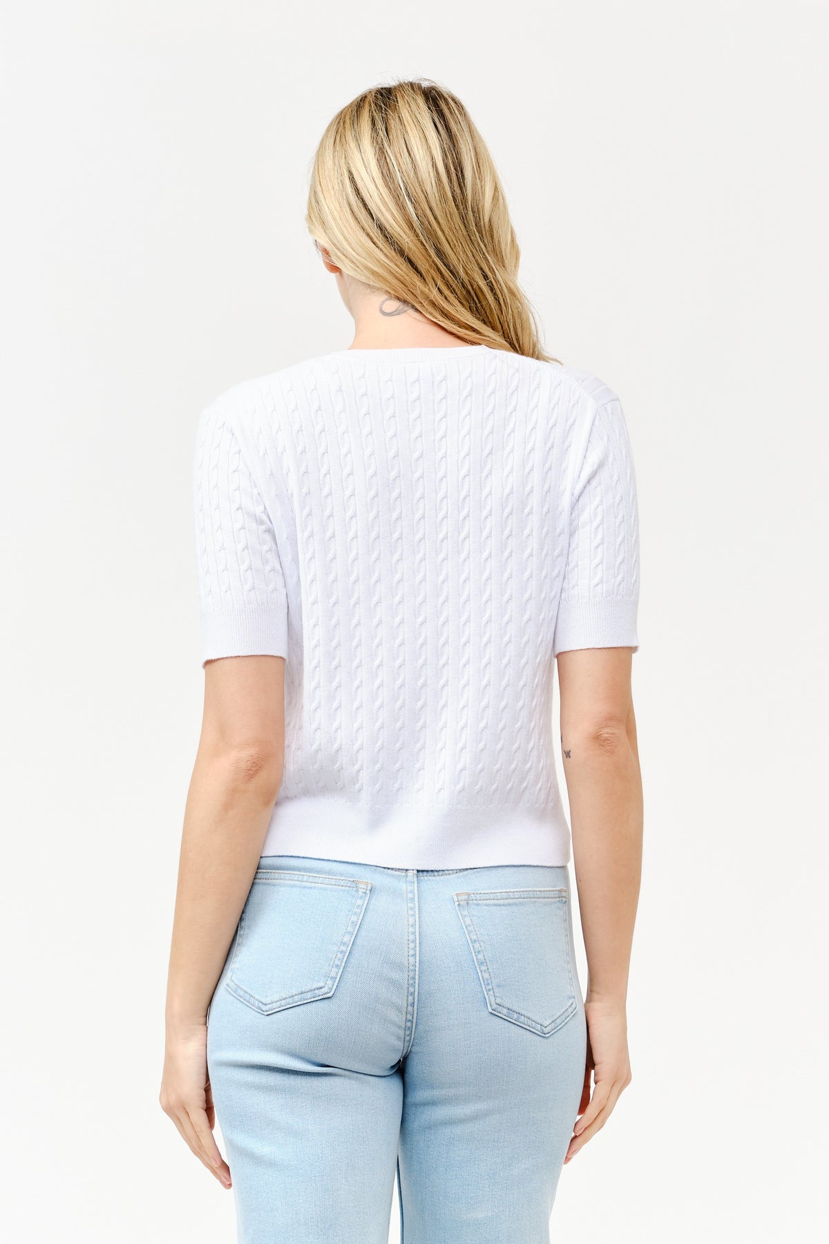• Cropped cable knit short sleeve top with a polished, sophisticated feel and timeless appeal
