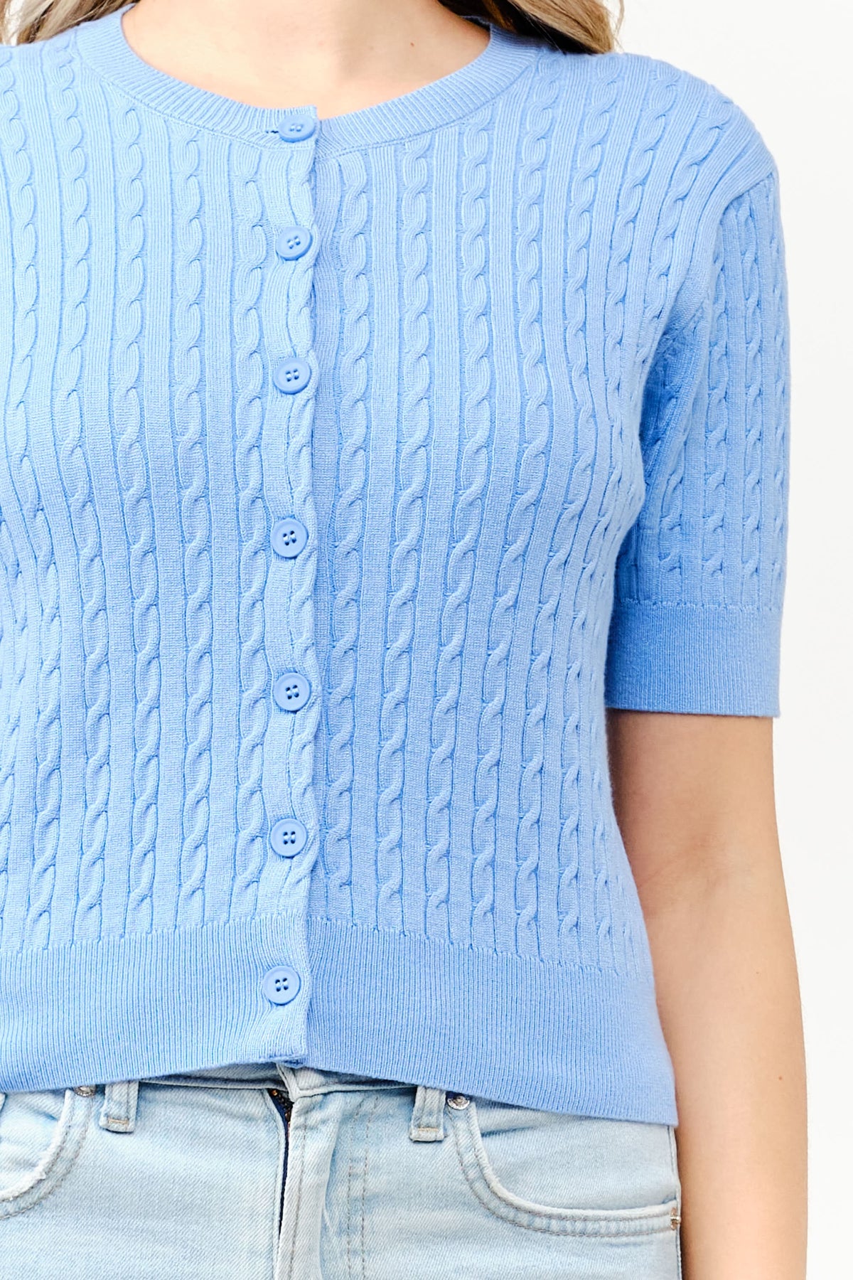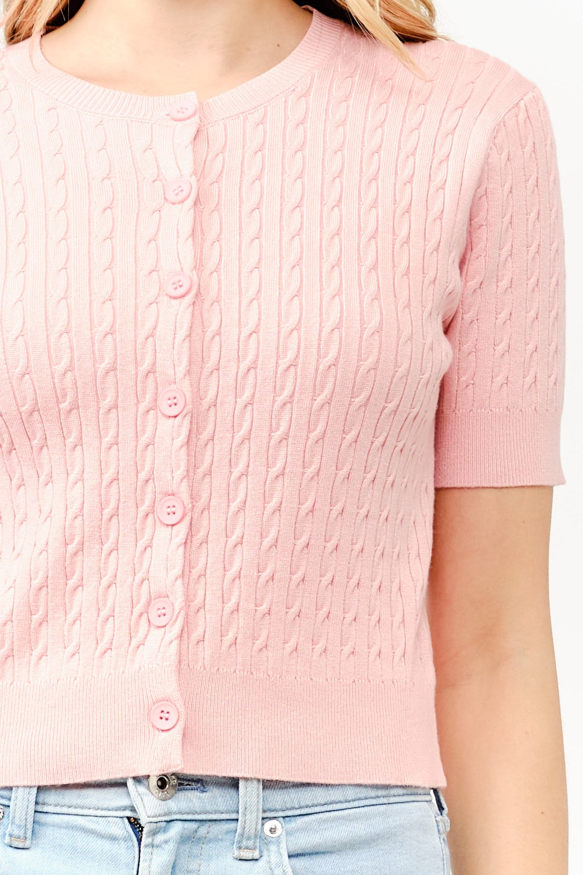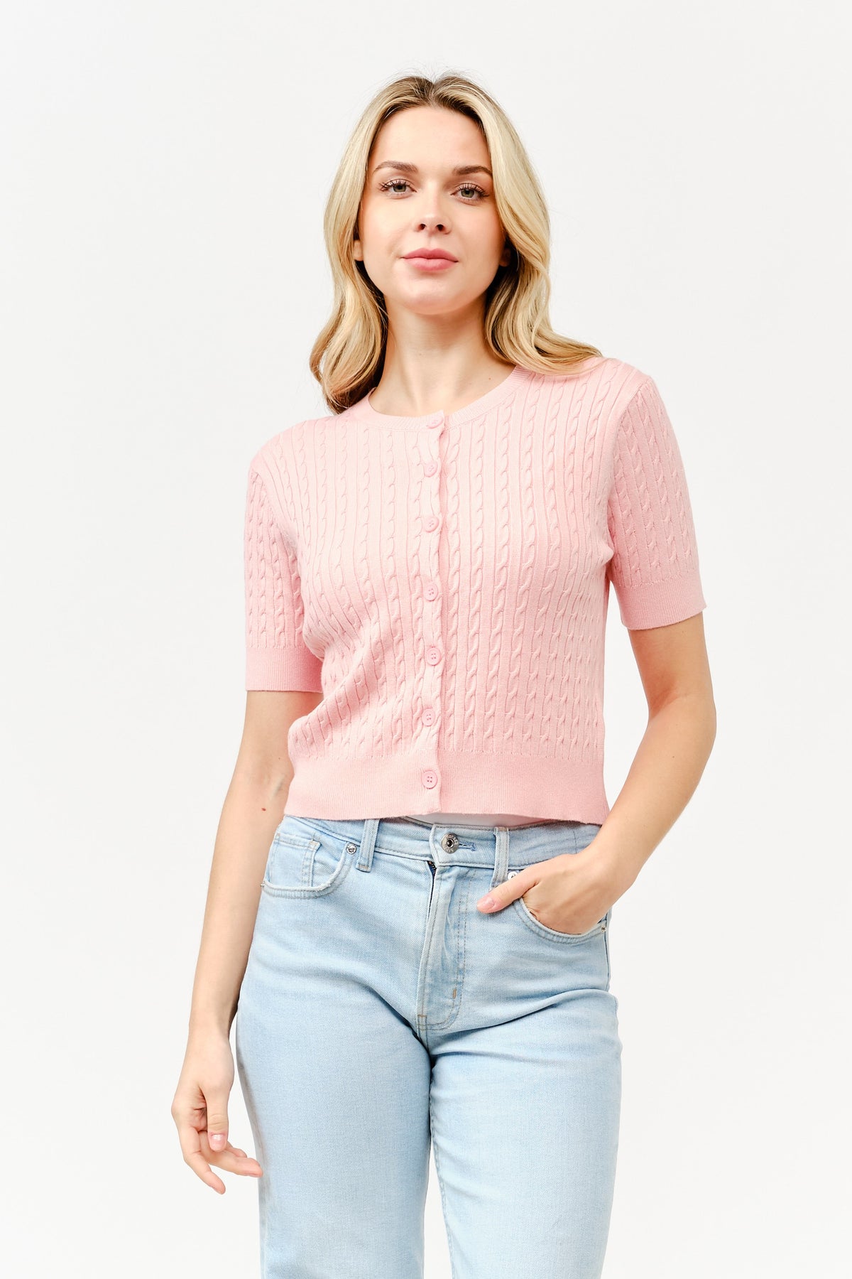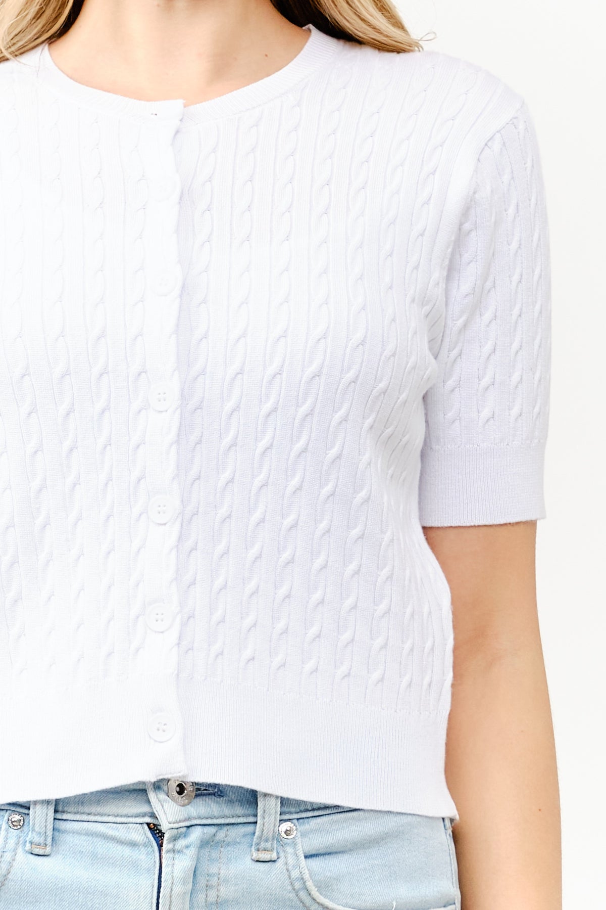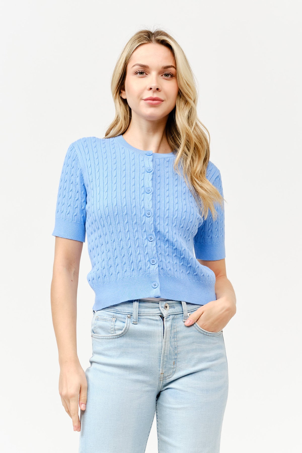 • Cropped cable knit short sleeve top with a polished, sophisticated feel and timeless appeal