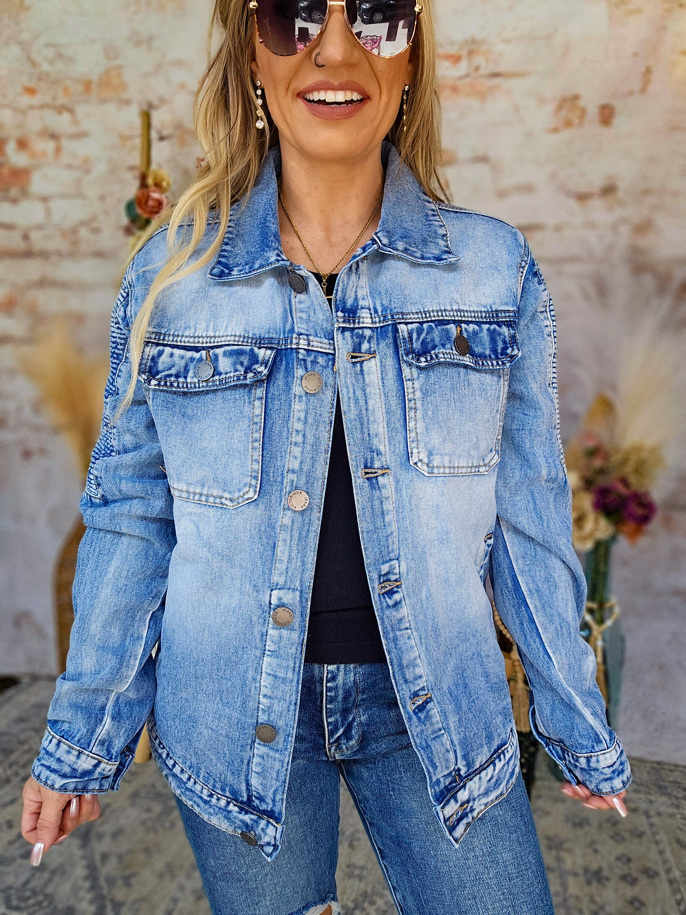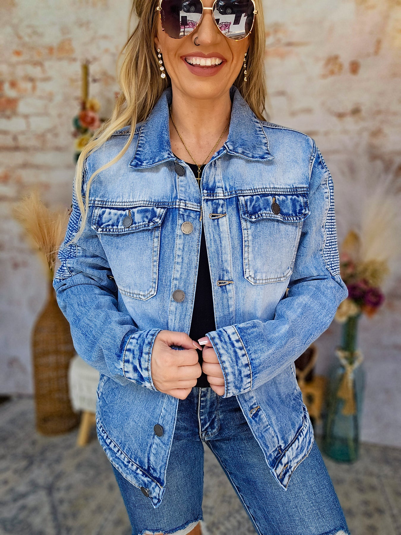 Classic button closures, chest pockets, and side slit pockets keep it functional and cool. Whether you’re hitting the road or just channeling those edgy vibes, this jacket is your go-to for a look that’s equal parts badass and effortlessly stylish!