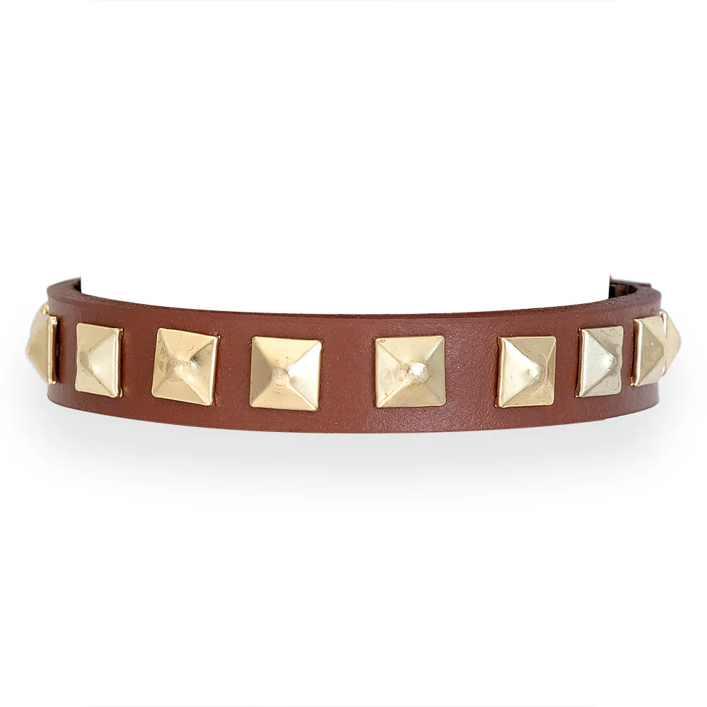 Gold-tone metal square accents add a sleek and sophisticated shine.