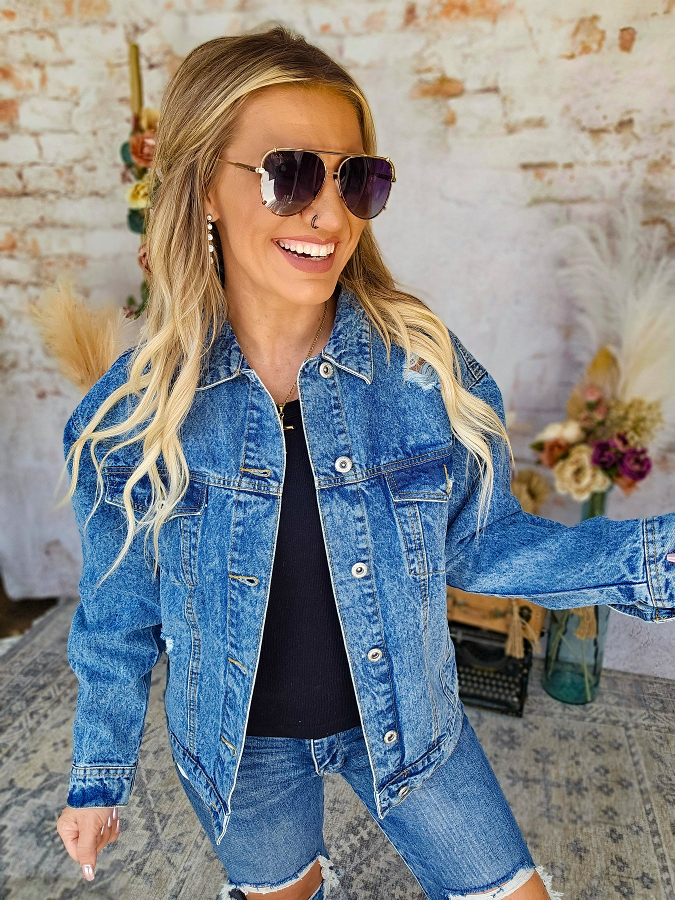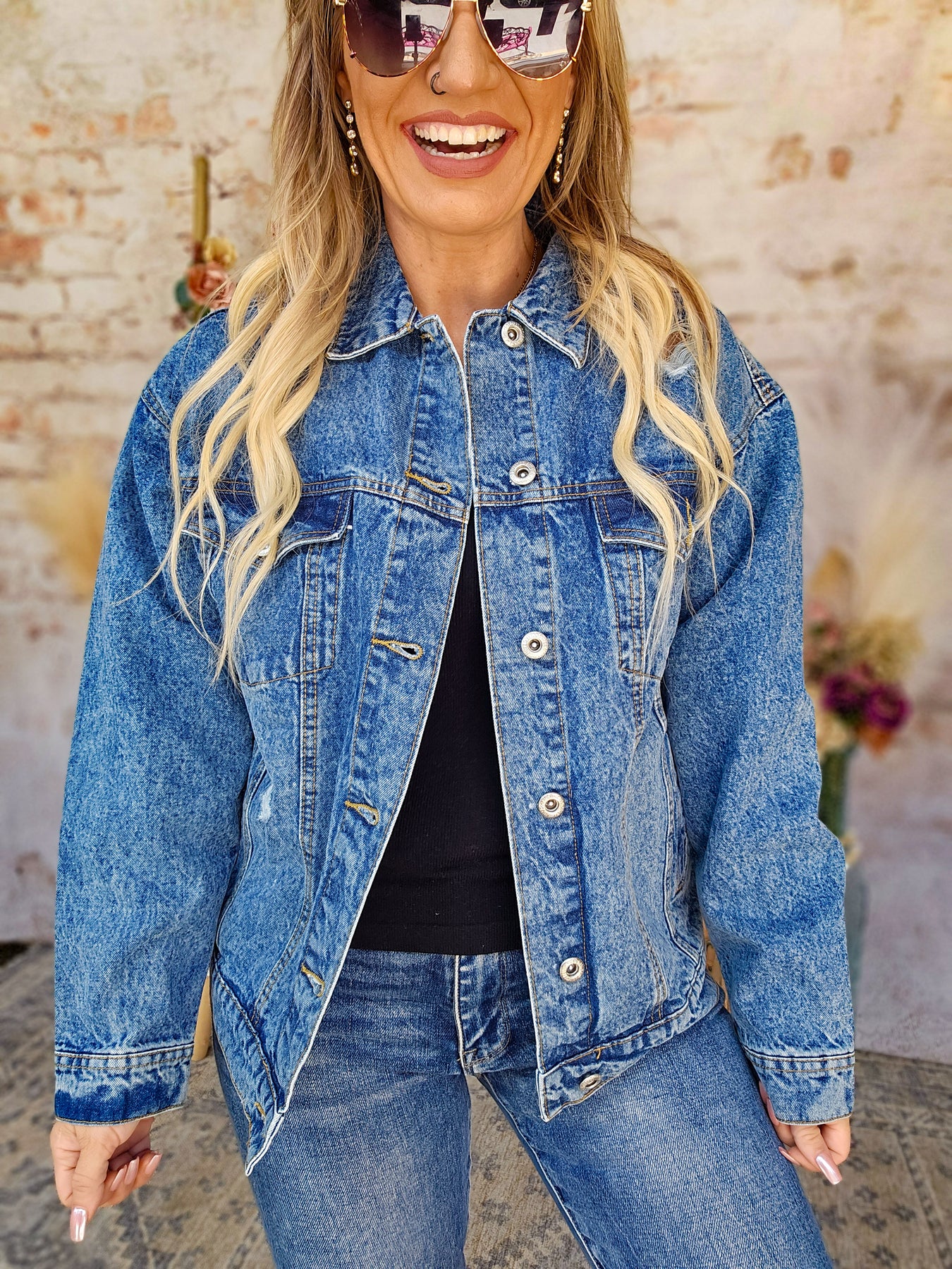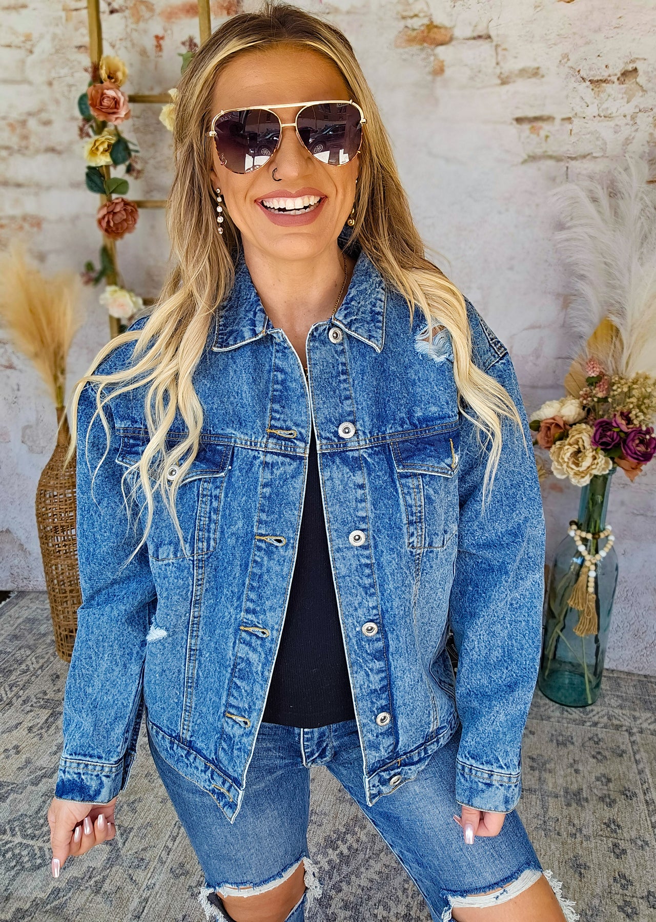 Embrace that laid-back, cool vibe with this Denim Oversized Distressed Jacket! With its relaxed fit and worn-in, distressed wash, this jacket brings all the cozy, effortlessly chic energy you need. The oversized design makes it perfect for layering over any outfit, while the rugged details add a touch of edgy style. Whether you’re pairing it with jeans or a dress, this jacket is all about adding a dash of attitude with ultimate comfort!