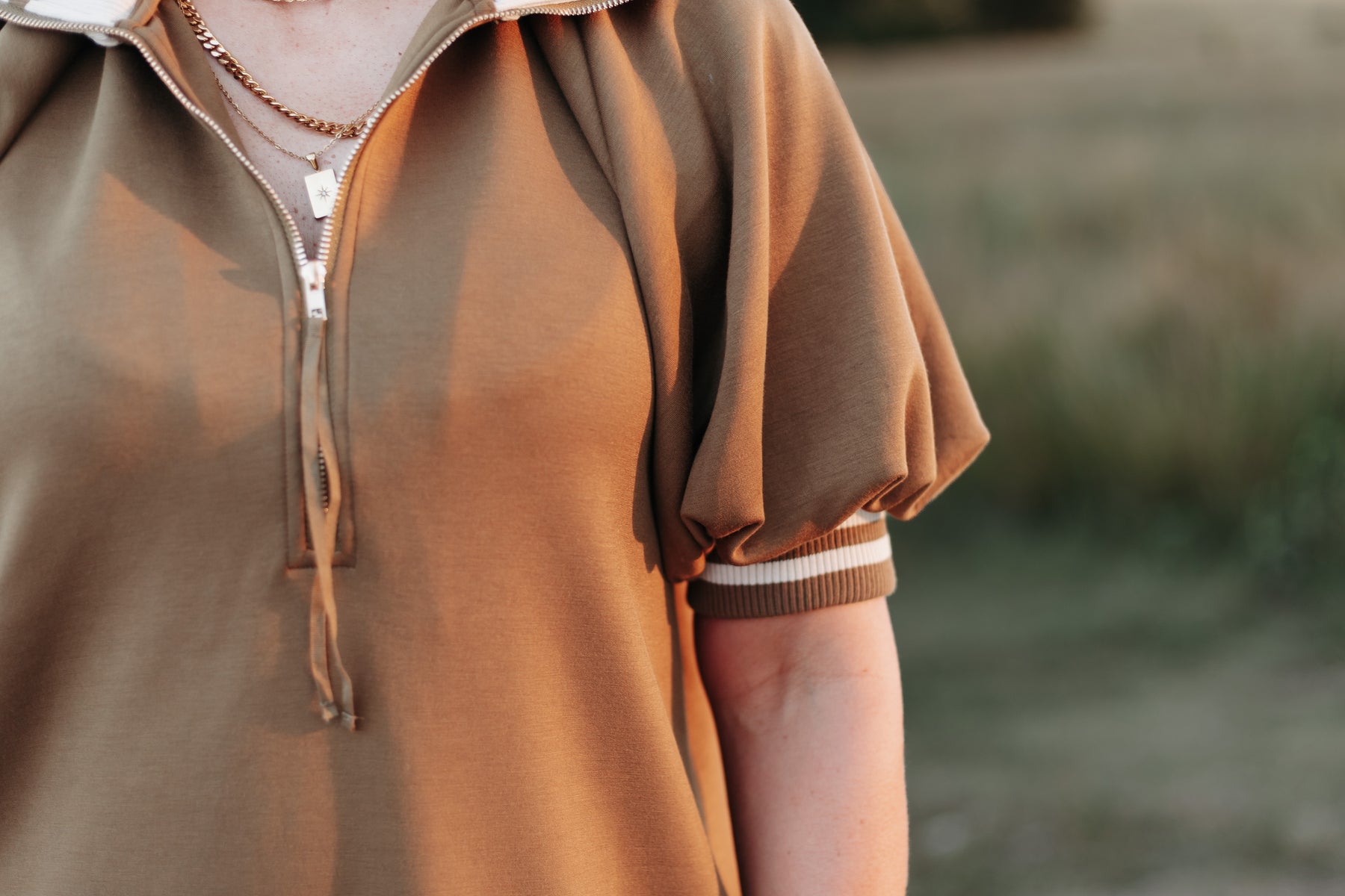 Multicolor ribbed trim adds a playful, sporty-chic touch